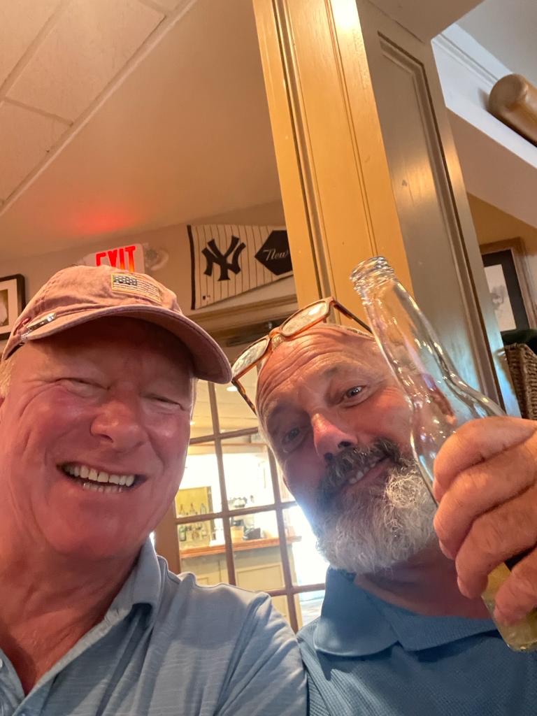The featured match of the day was the doubles battle between Carroll/McDonald and Collins/McDonough. The defending champs started out hot on the front side and were cruising along until nature intervened on the ninth hole. While looking for an errant shot in the right rough, McDonald was attacked by a swarm of bees that had their way with him many times. (There is a rumor going around that these were Galway bees). With McDonald playing hurt, Collins and McDounough roared back, and stepped up to the eighteenth tee box up one. Ignoring the pain and suffering of his traumatic insect incident, McDonald stiffened and sunk a huge birdie putt to force the match into extra holes. After winning the first hole, and halving the second, the Champs were in control stepping up to the par-three third hole. That’s when Jarleth delivered a dagger to the heart in the form of a tee shot to within five inches of the cup, good for a tap-in birdie, and the win. The Champs move on to the semi-finals, and Collins and McDonough walked away scratching their heads and wondering what happened.