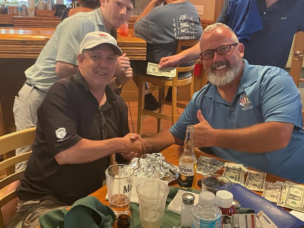 Pascal Doran snuck by Dennis Guilfoyle 2 and 1.Doubles Matches:Omar Zabian and Billy Mulhall bested Noel McNamara and Tom Birkett 4 and 2.Defending champions Jarlteth Carroll and Eric McDonald beat Sean Collins and Steve McDonough in a three hole playoff.Last Thursday Cyril Carroll and Mark Ward got past Paul Chiapetta and Chris Fratarolli 3 and 2.