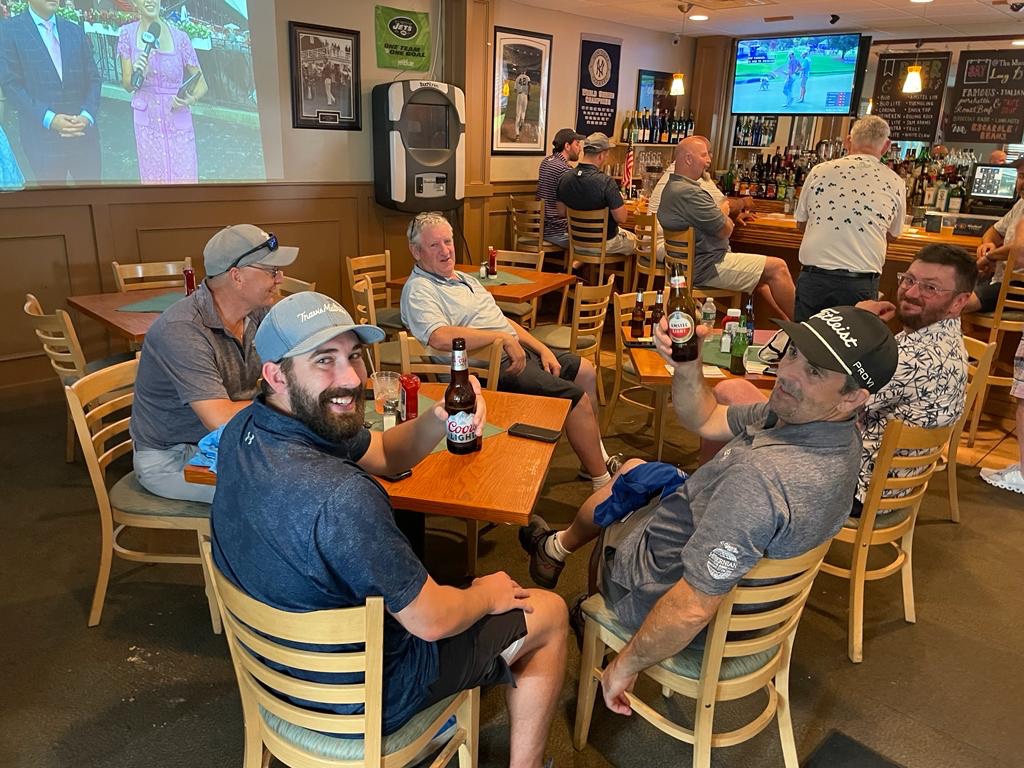 The shot of the day came on the second hole, when Derek Magro holed out from about 110 yards for an eagle Fortunately for Derek, his eagle was not of the hole-in-one variety. Those can be expensive with this crowd.
