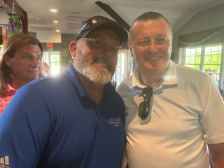 Collins in particular was hot on the front nine. Using the skills he learned at the McNamara Golf Academy, he repeatedly sent shots flying into trees only to have them obediently roll back onto the fairway. He saved his most skillful shot for the ninth. Short of the green, and with an extreme uphill lie, Sean and his partner decided that a bump and run was the wisest play. Sean pulled his club back, struck the ball, and sent it soaring about eighty feet in the air, landing five feet from the pin, then sunk the putt. A search of the HGA record book reveals that to be the highest hit bump and run in club history. Duggan and O’Sullivan played well, but they had no answers to that kind of shot making.